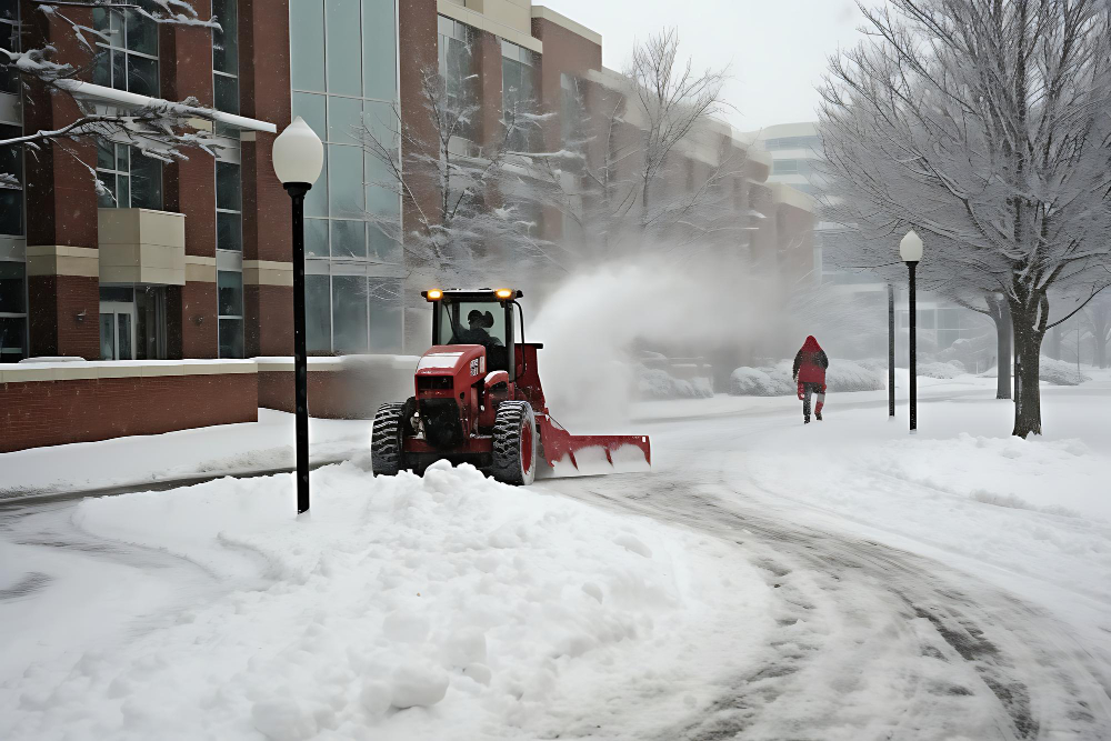 Unser Team von erfahrenen Fachkräften gewährleistet eine professionelle Schneeräumung für Ihre Verkehrsflächen.